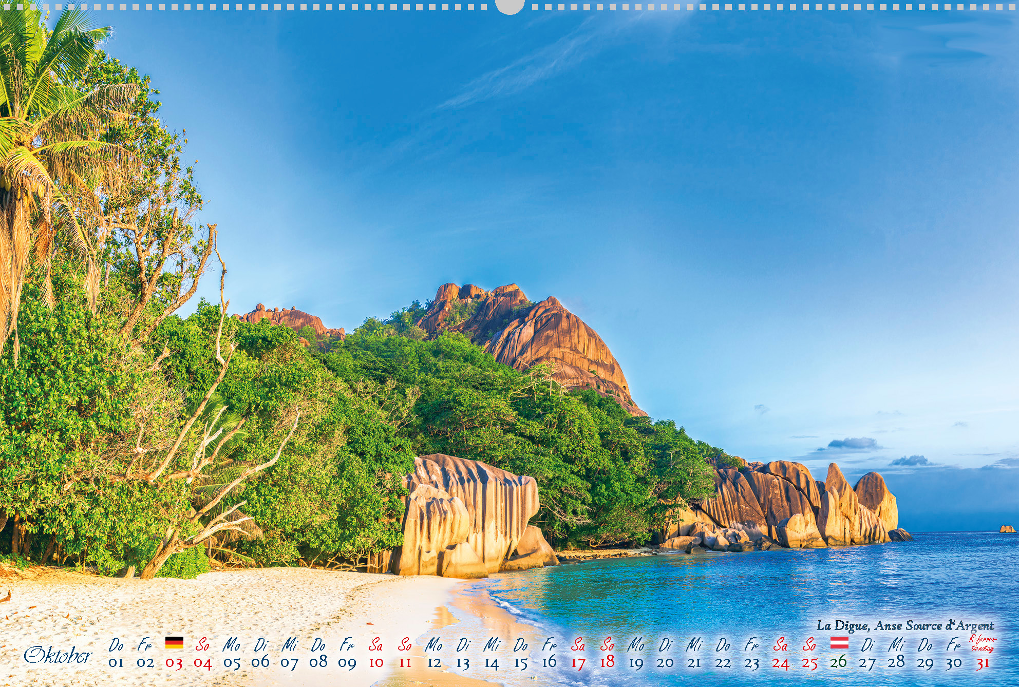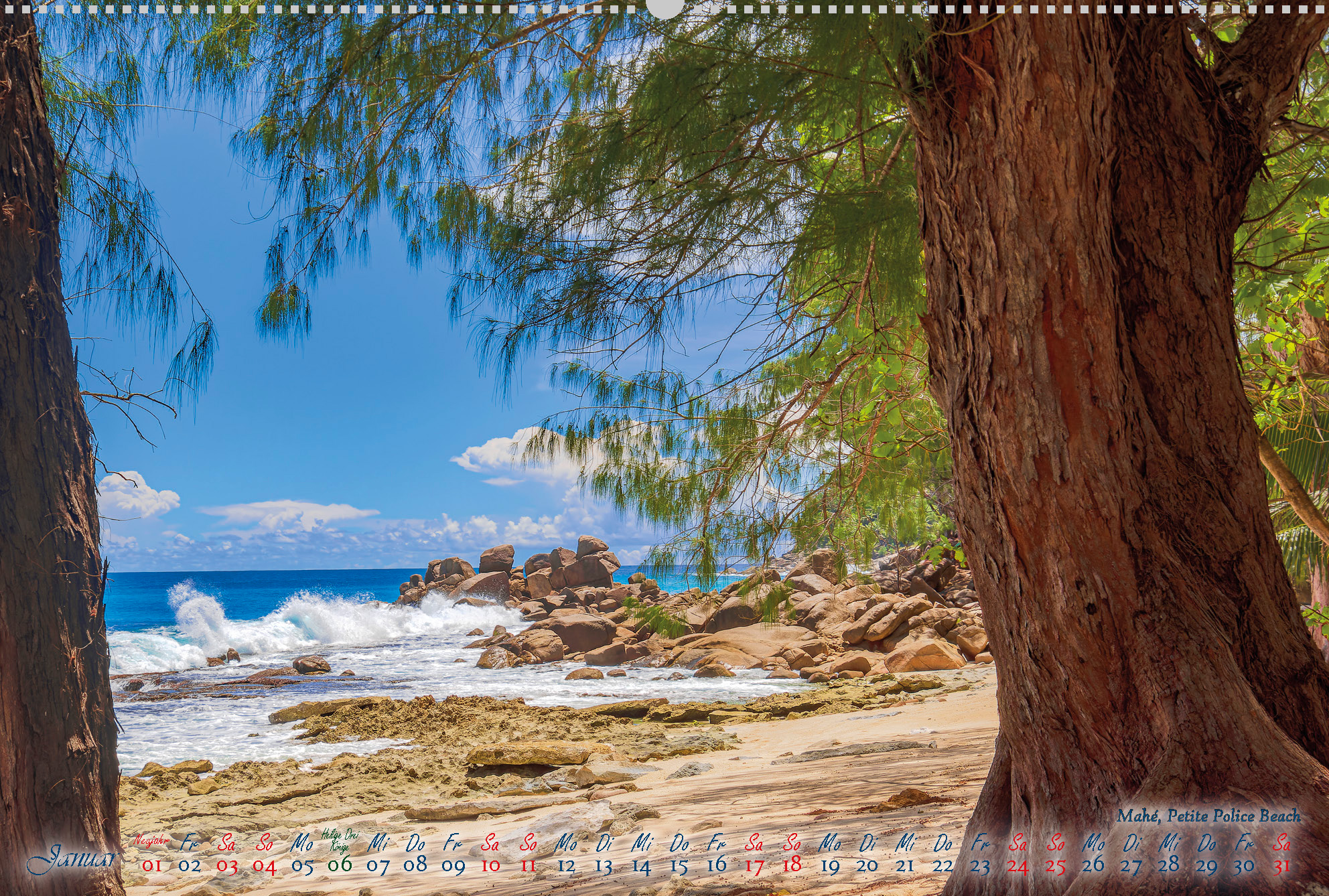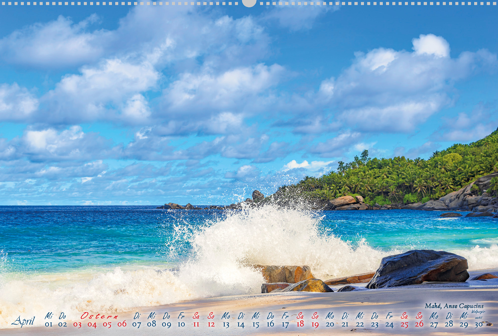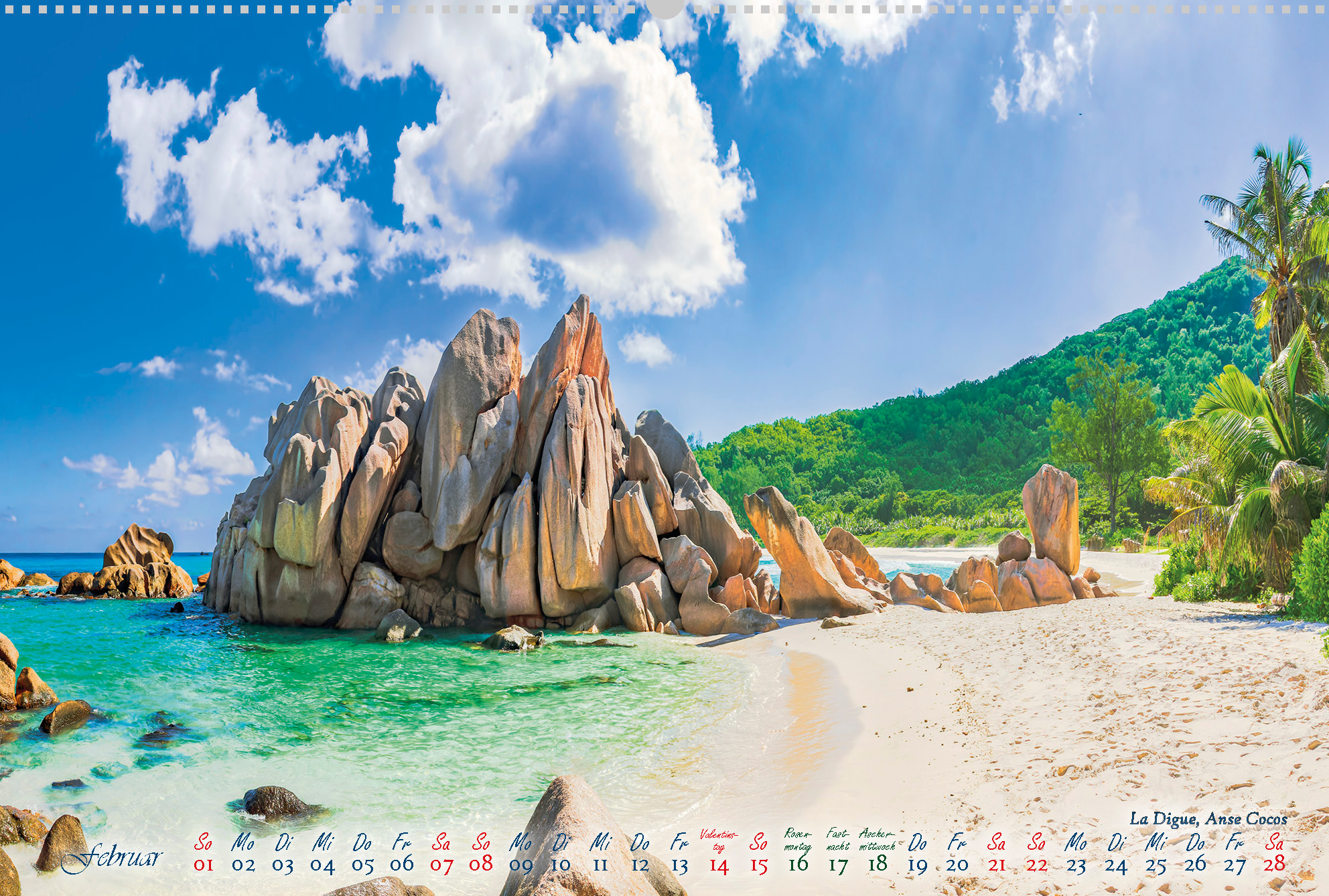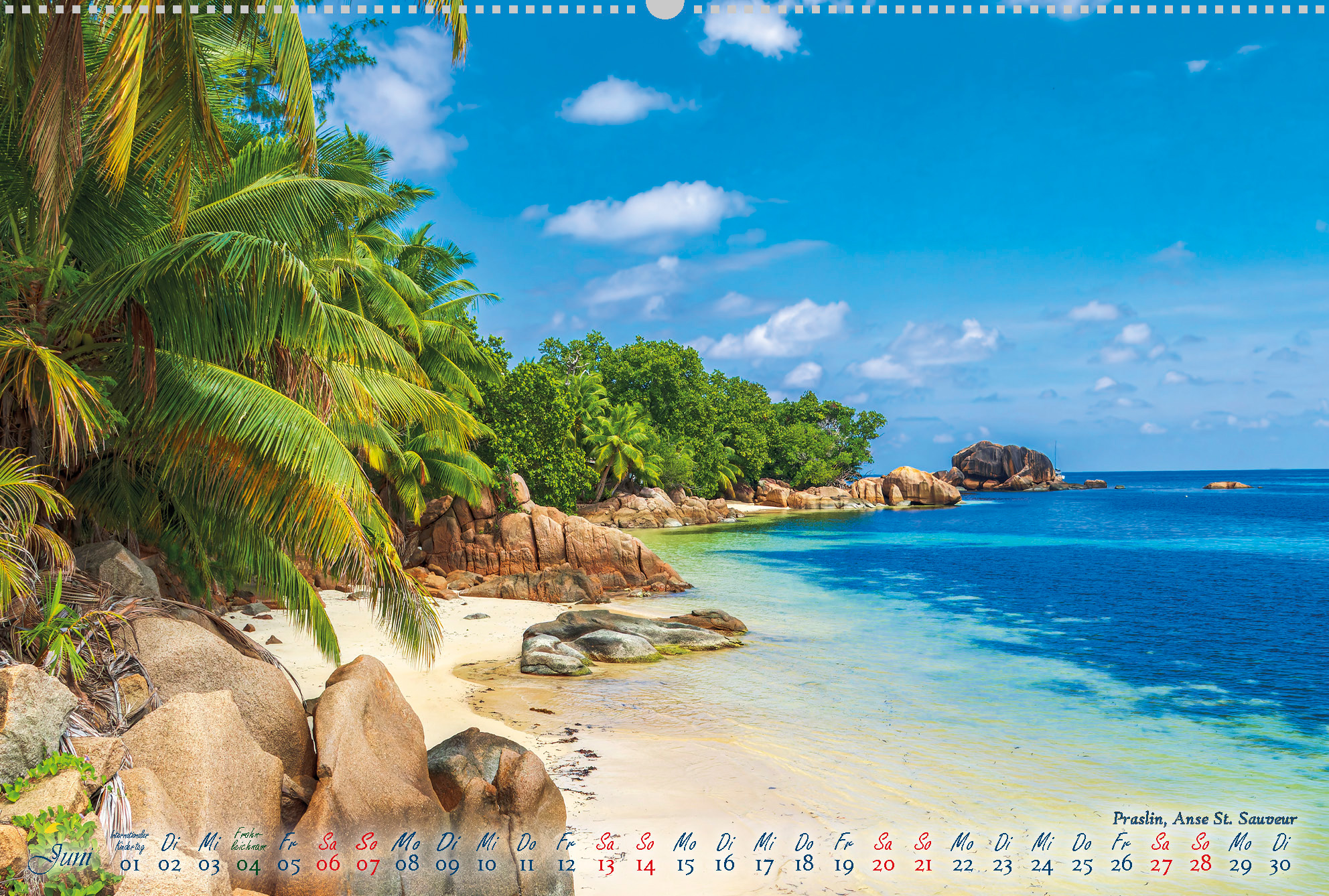 Hochwertiger großer Fotokalender mit traumhaften Motiven der Seychellen.