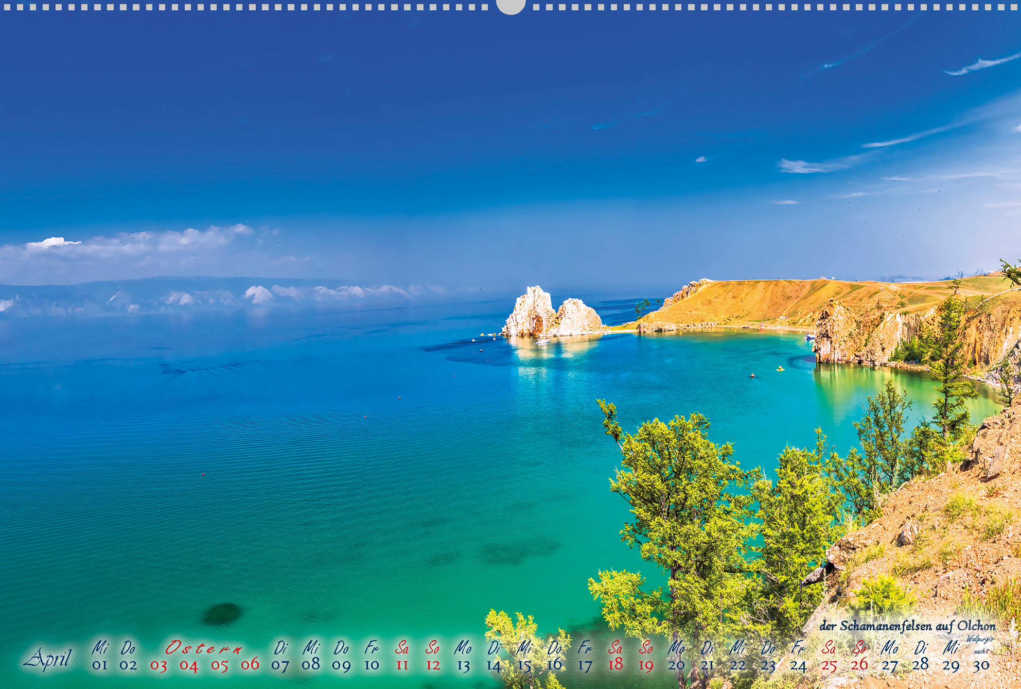 Hochwertiger großer Fotokalender mit beeindruckenden Motiven vom Baikalsee und Umgebung, von der Insel Olchon und aus dem Tunka-Tal in Sibirien, Russland.